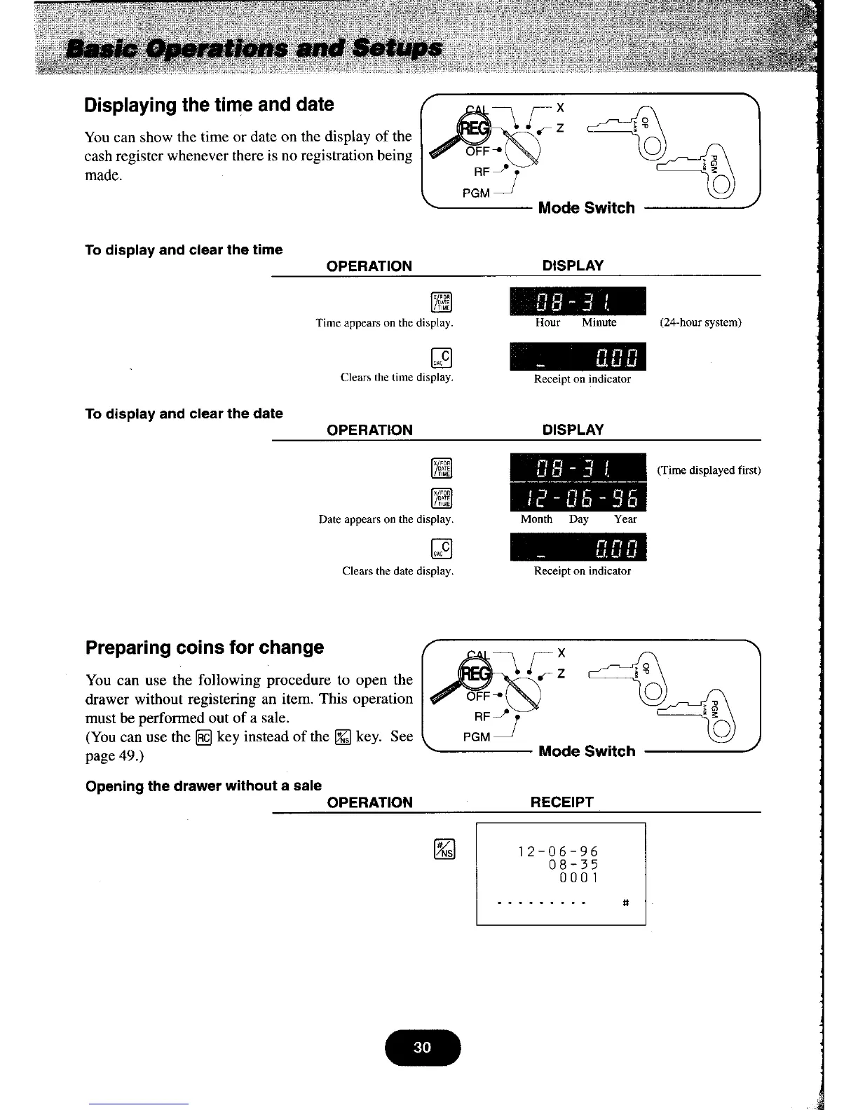 Casio PCR-460 - Displaying the Time and Date; Preparing Coins for Change; To Display and Clear the Time; To Display and Clear the Date