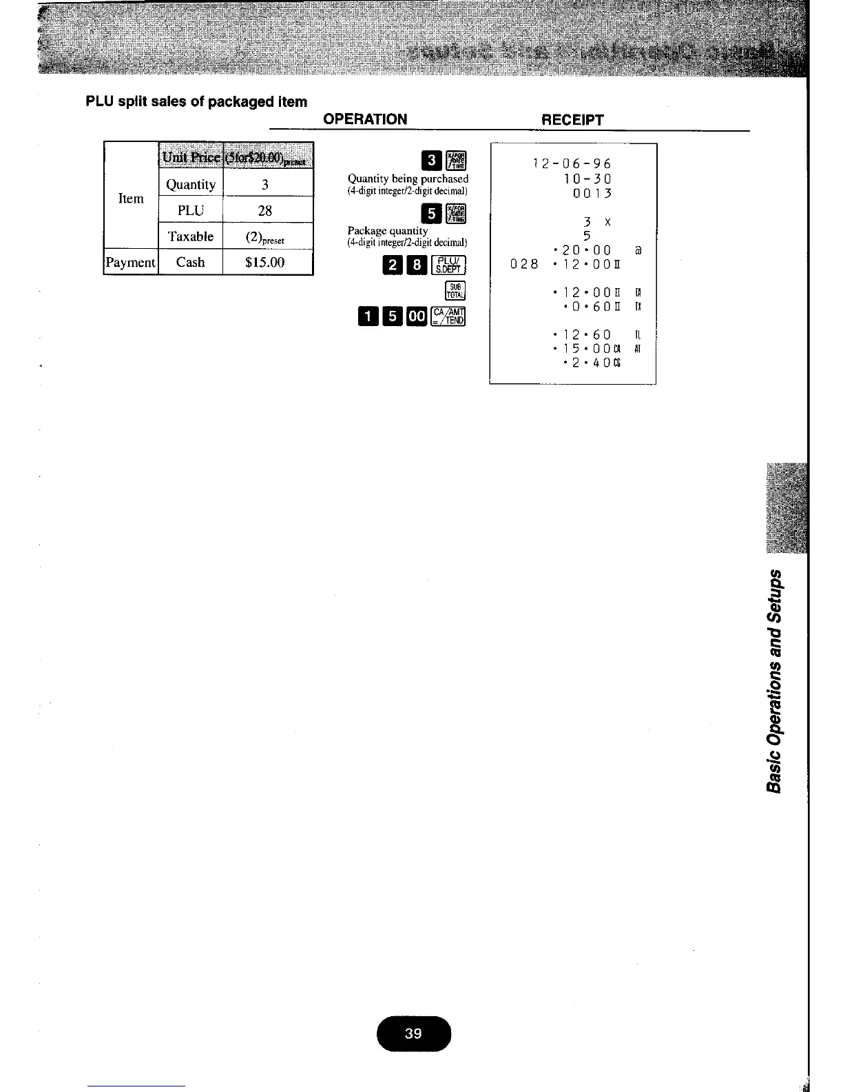 Casio PCR-460 - PLU Split Sales of Packaged Item