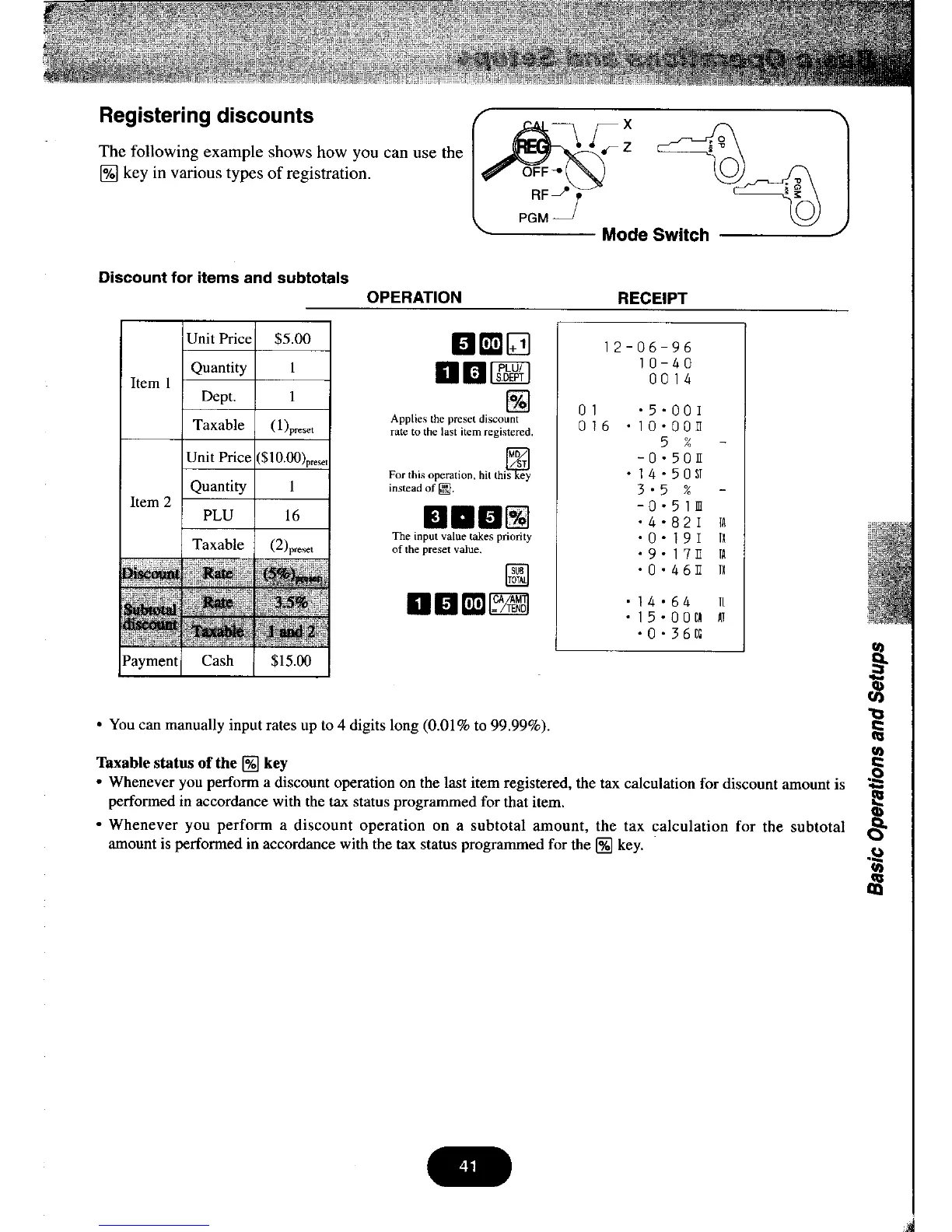 Casio PCR-460 - Registering Discounts; Discount for Items and Subtotals