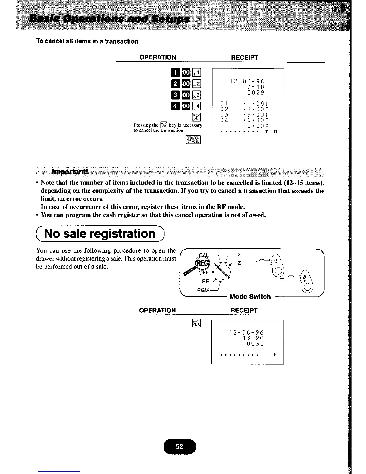 Casio PCR-460 - No Sale Registration; To Cancel All Items in a Transaction
