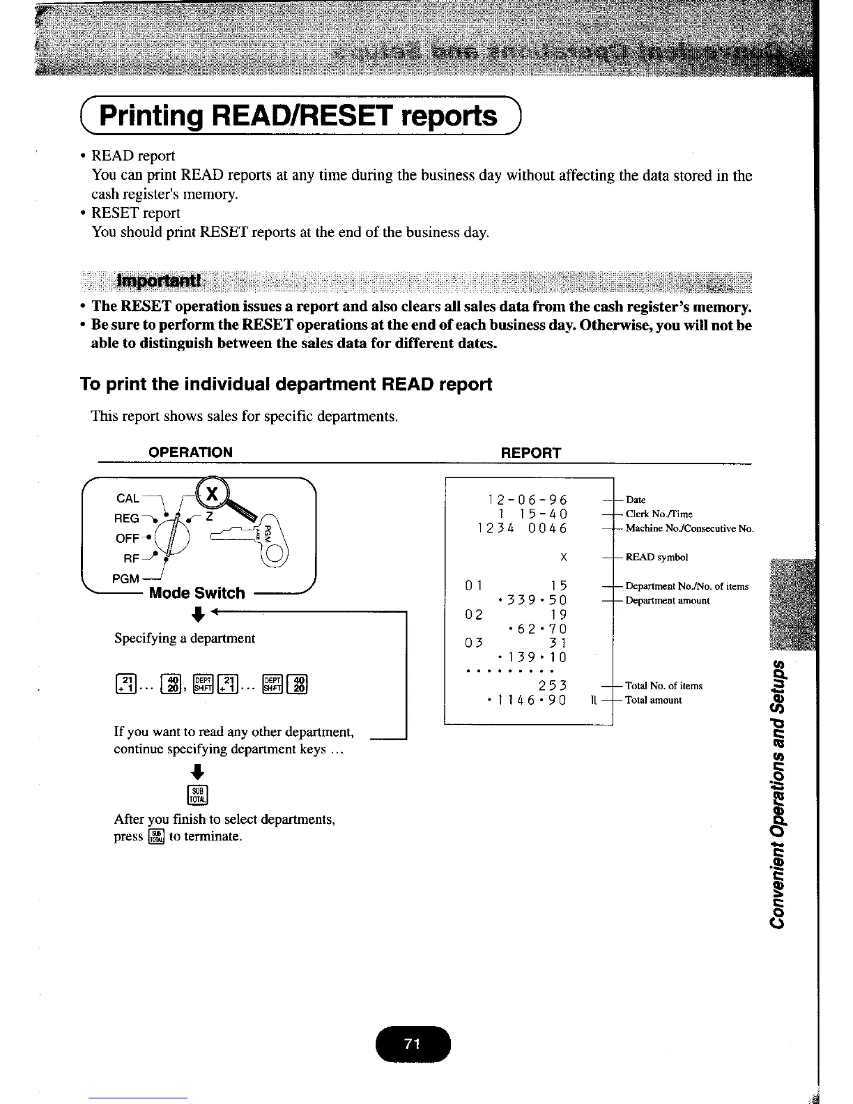 Casio PCR-460 - Printing READ;RESET Reports; To Print the Individual Department READ Report