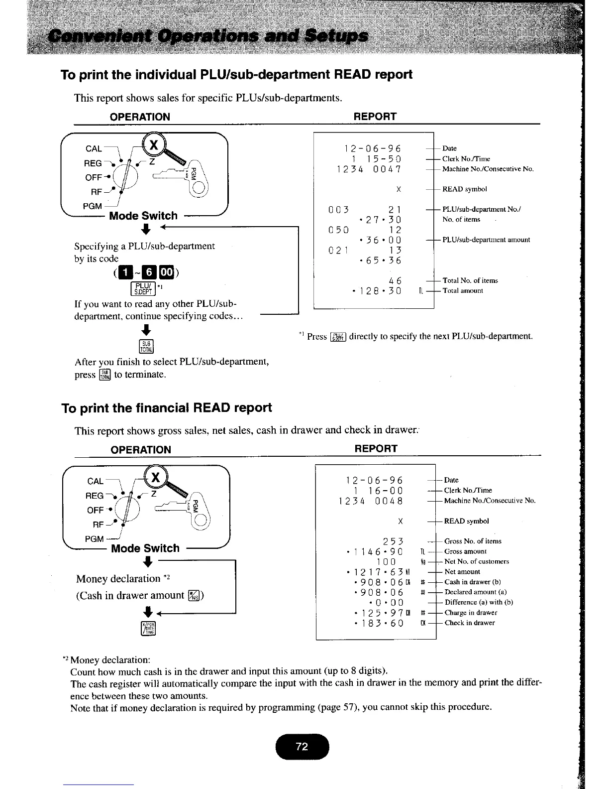 Casio PCR-460 - To Print the Individual Plu;Sub-Department READ Report; To Print the Financial READ Report
