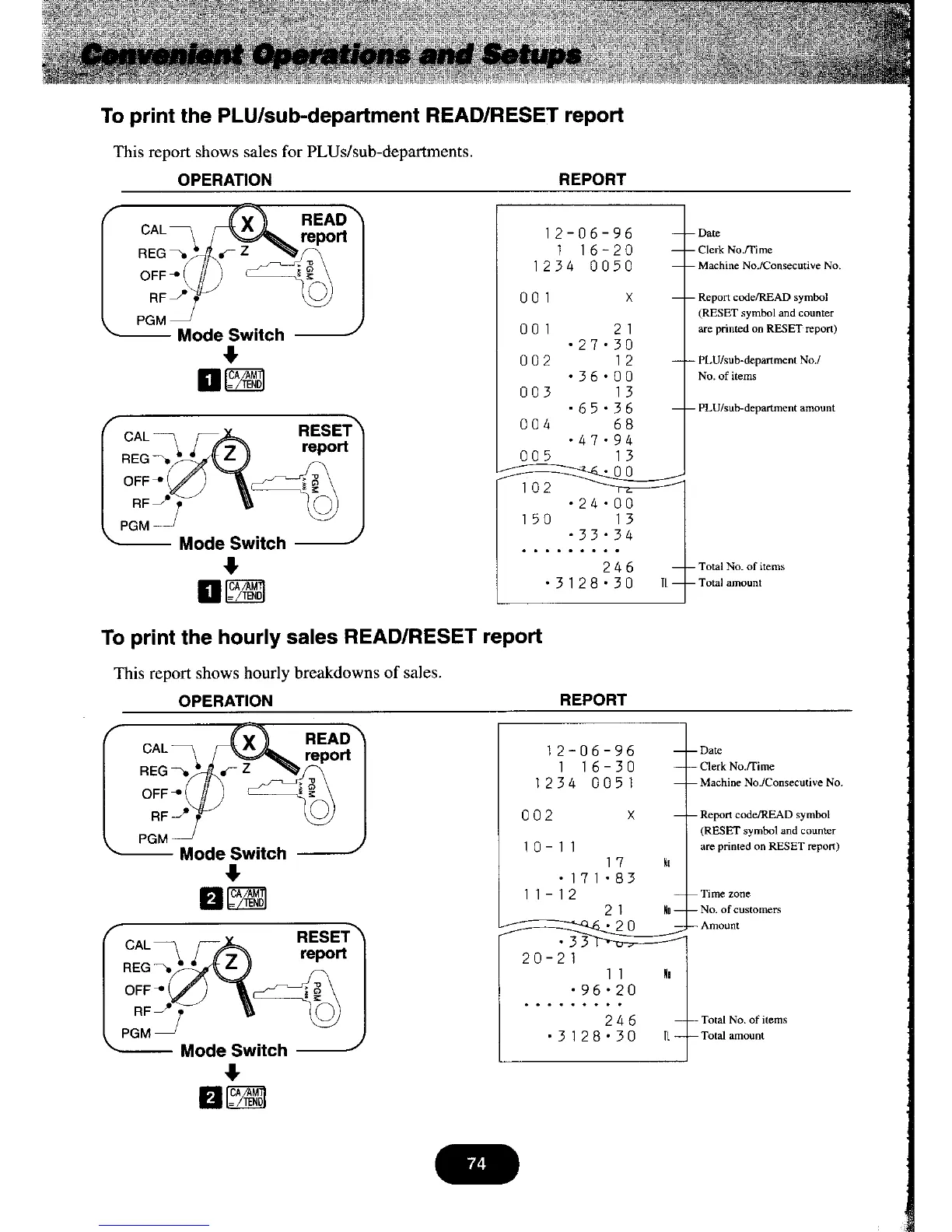 Casio PCR-460 - To Print the Plu;Sub-Department READ;RESET Report; To Print the Hourly Sales READ;RESET Report