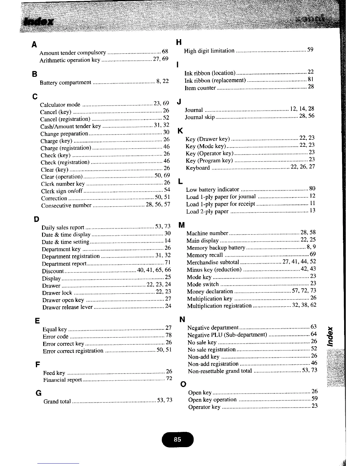 Casio PCR-460 - Index