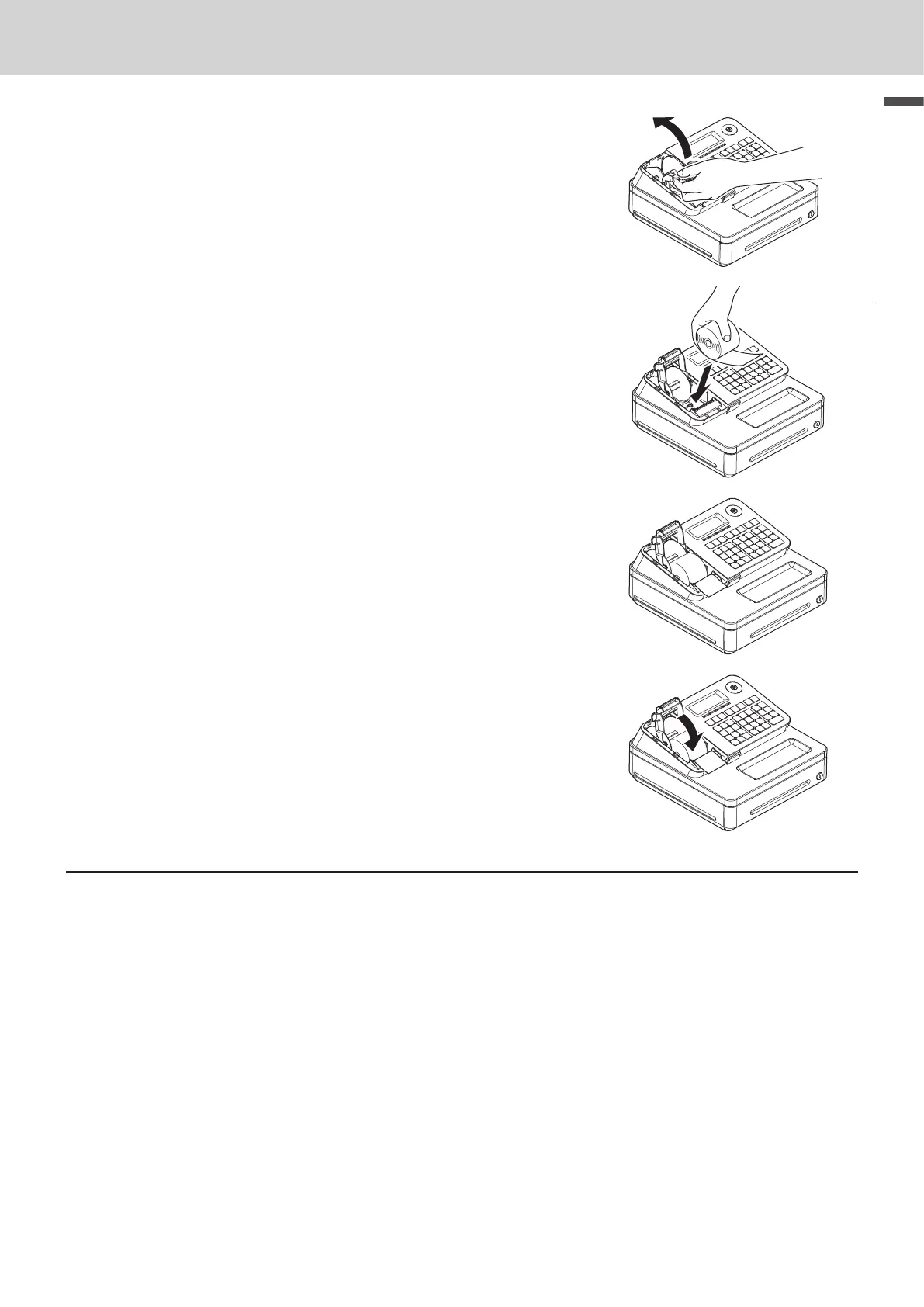 • If the thermal paper roll is not properly installed, you will not be able to use the Cash Register. The