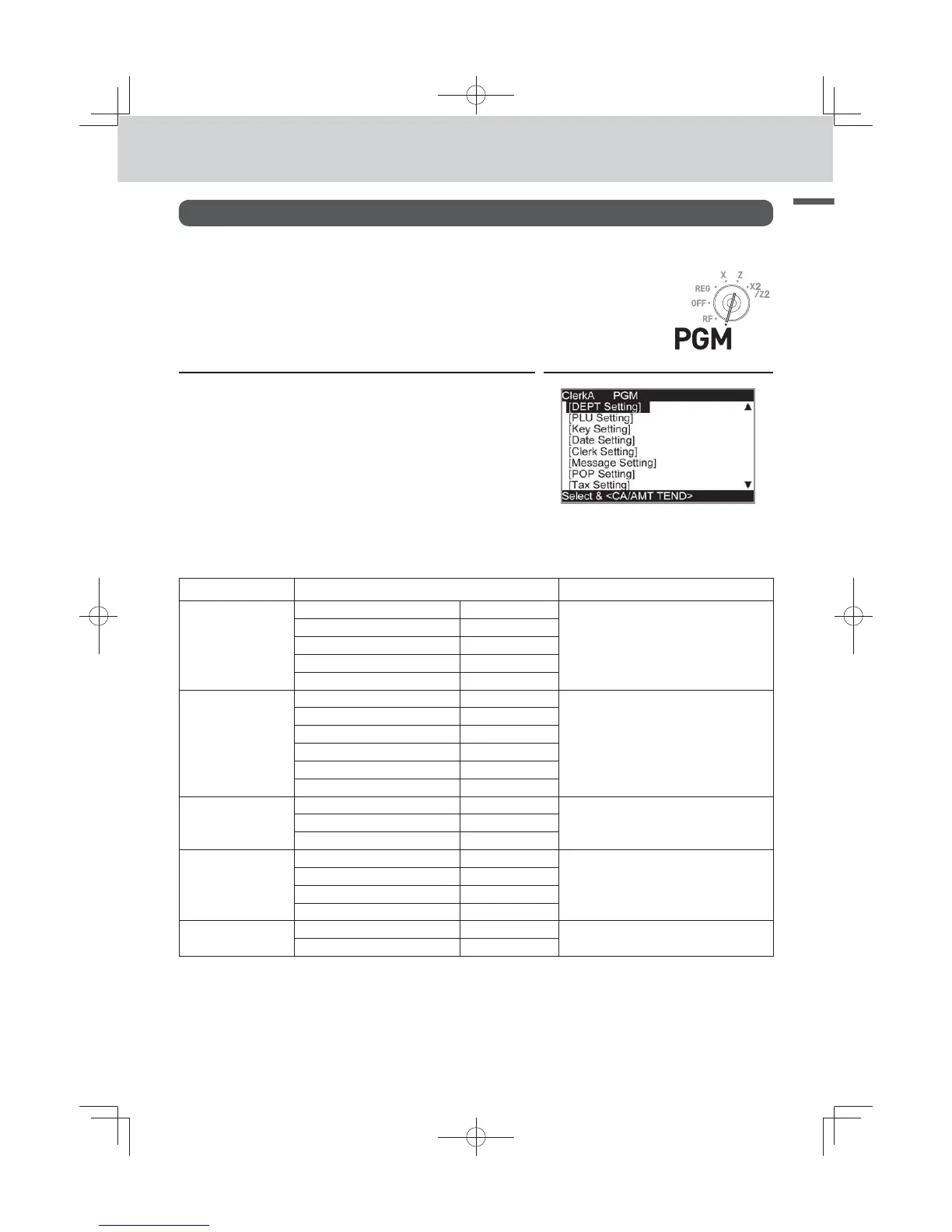 [DEPT Setting] DEPT name [DEPT0001 ] Sets name, unit price, taxable status, item