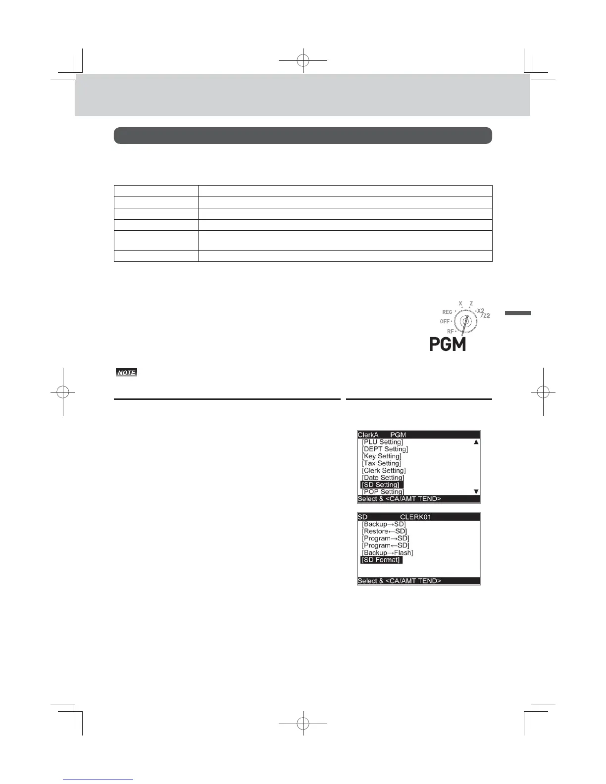 [Backup→SD] Stores sales data and program data of register to SD card.