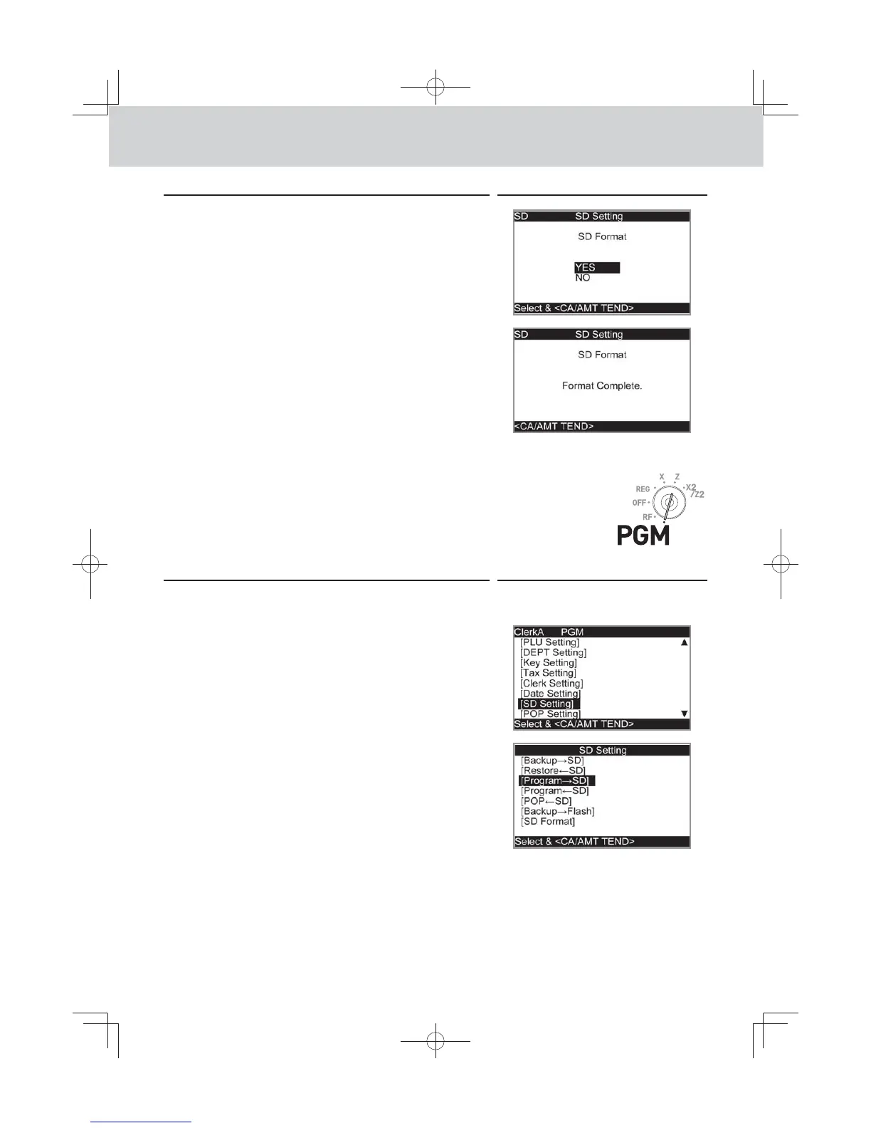 2 Turn the Mode switch to PGM position and select [SDcard