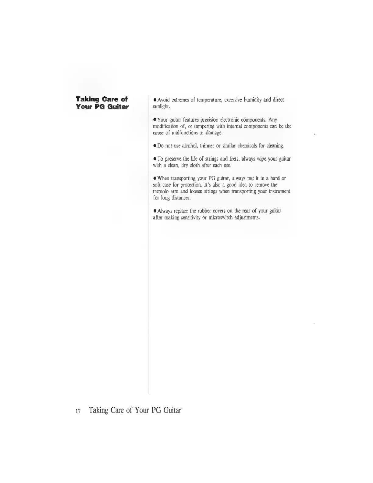 Casio PG-380 - Taking Care of Your PG Guitar