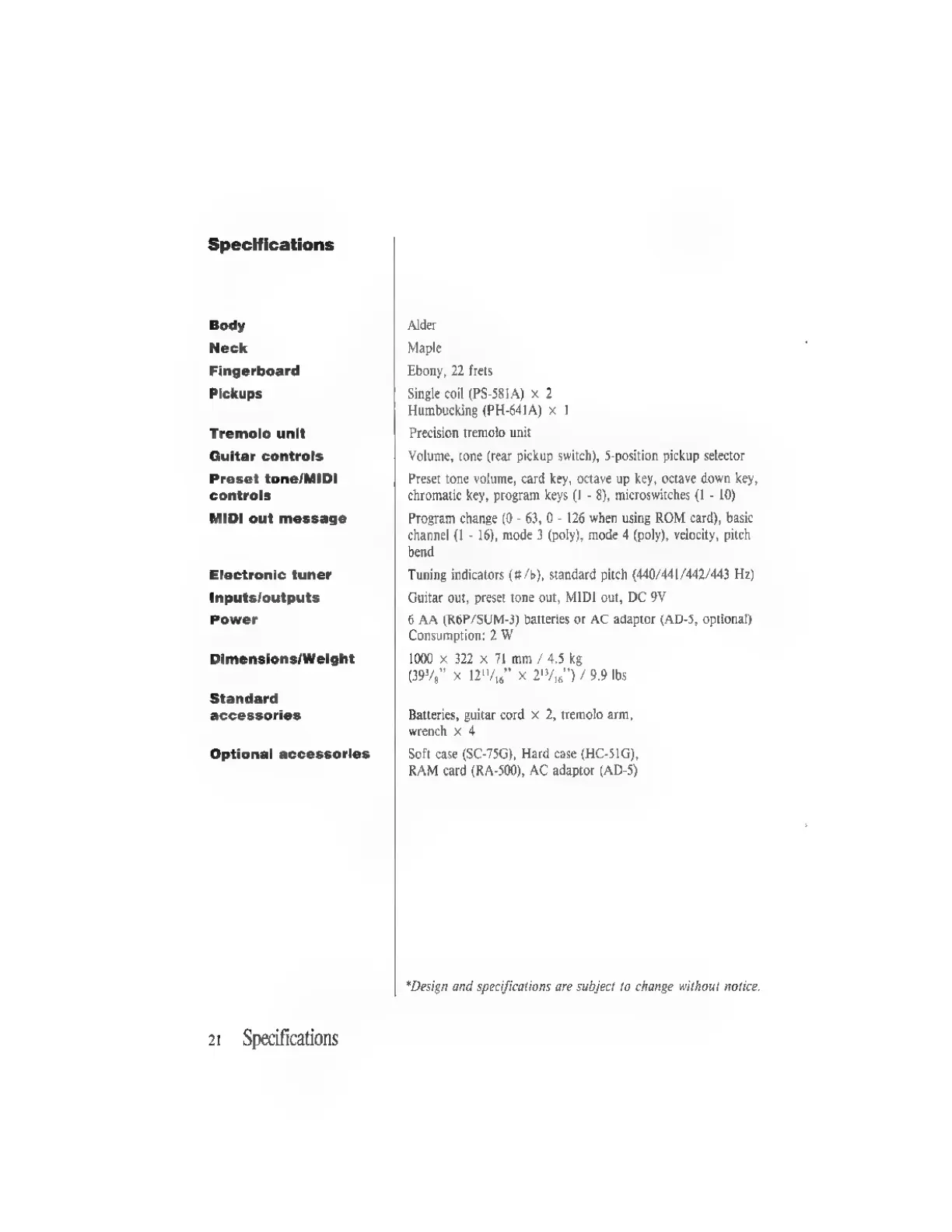 specifications