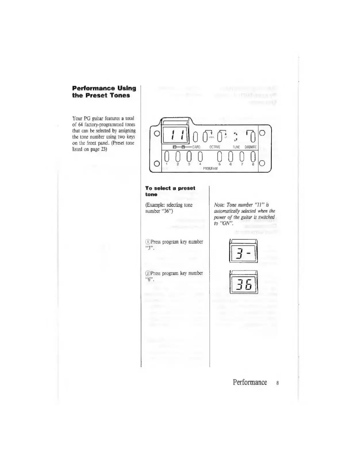 Casio PG-380 - Performance; Using Preset Tones