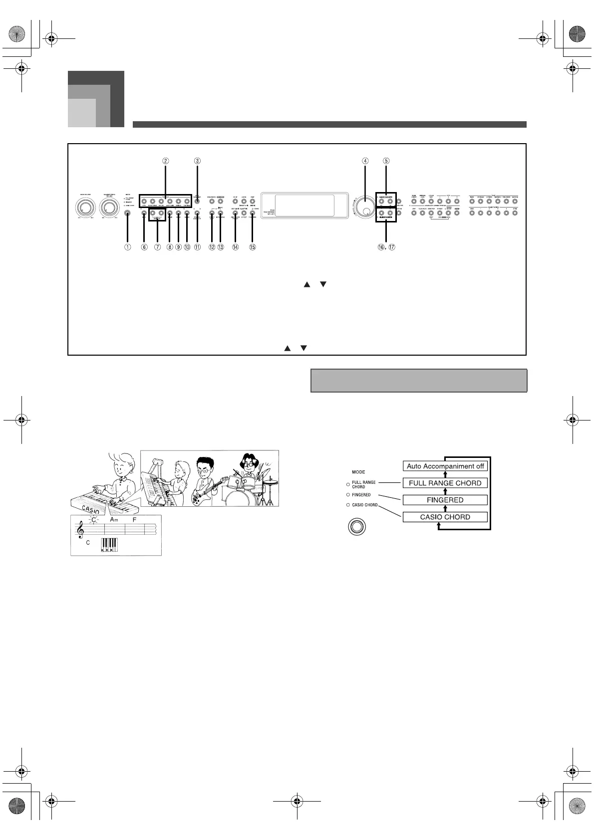 4 Selector dial 5 TRANSPOSE [ ]/[ ] 6 INTRO