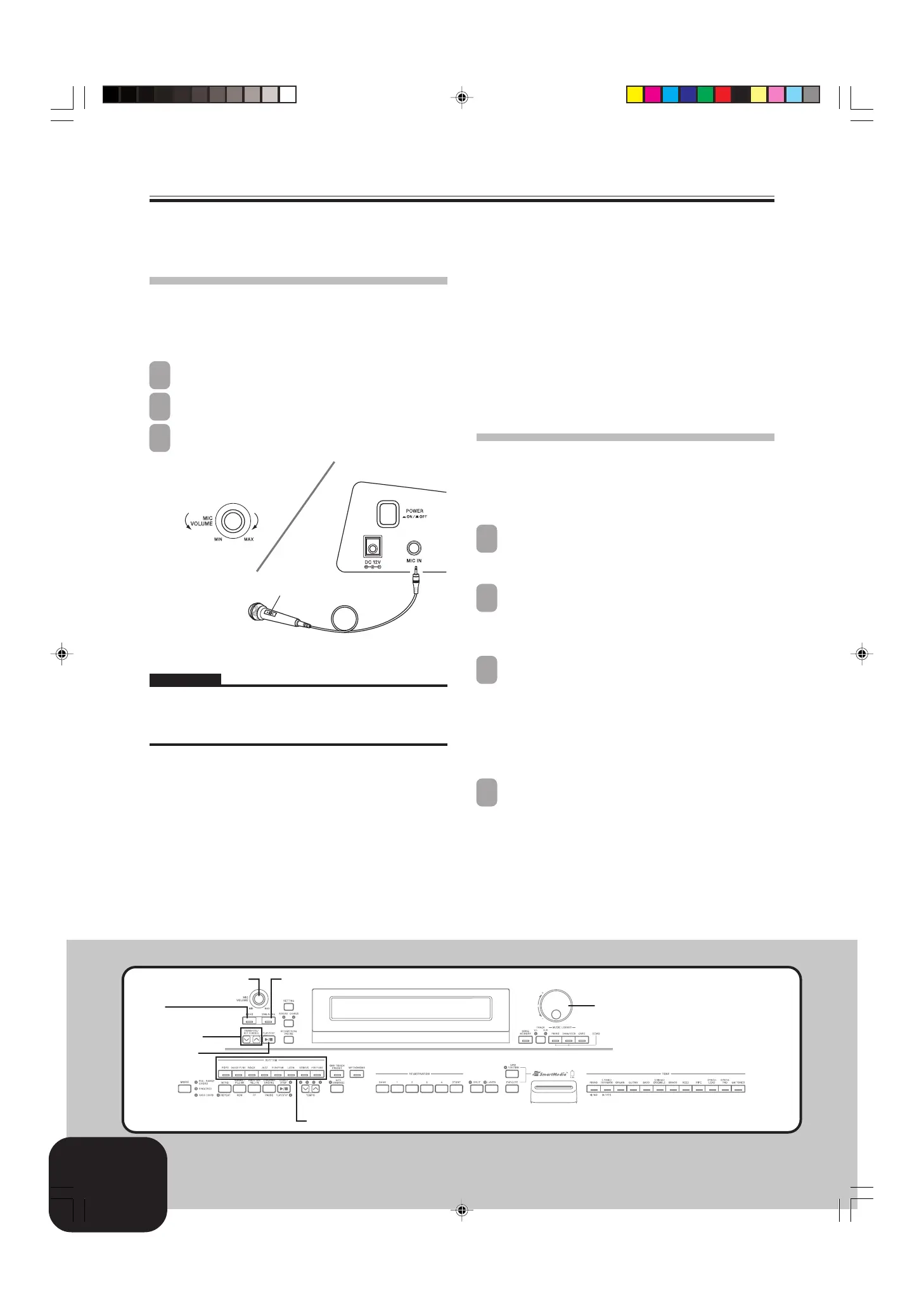 MIC VOLUME knob to a relatively low setting. Next, adjust the