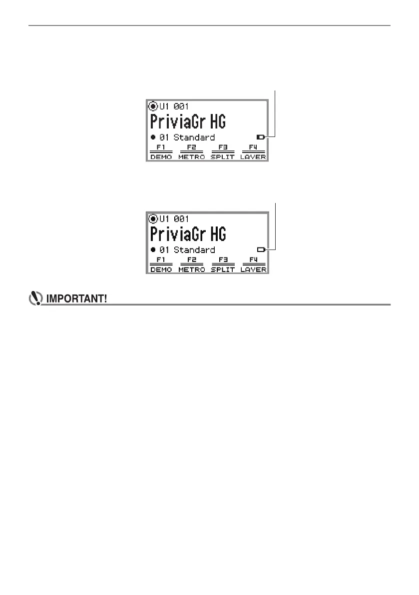 • Using the Digital Piano while batteries are very low can cause it to turn off suddenly. This can