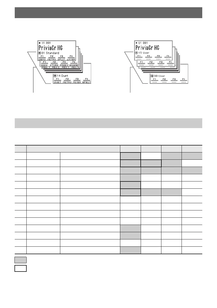 Preset F Button Sets (01–14) User F Button Sets (15–30)