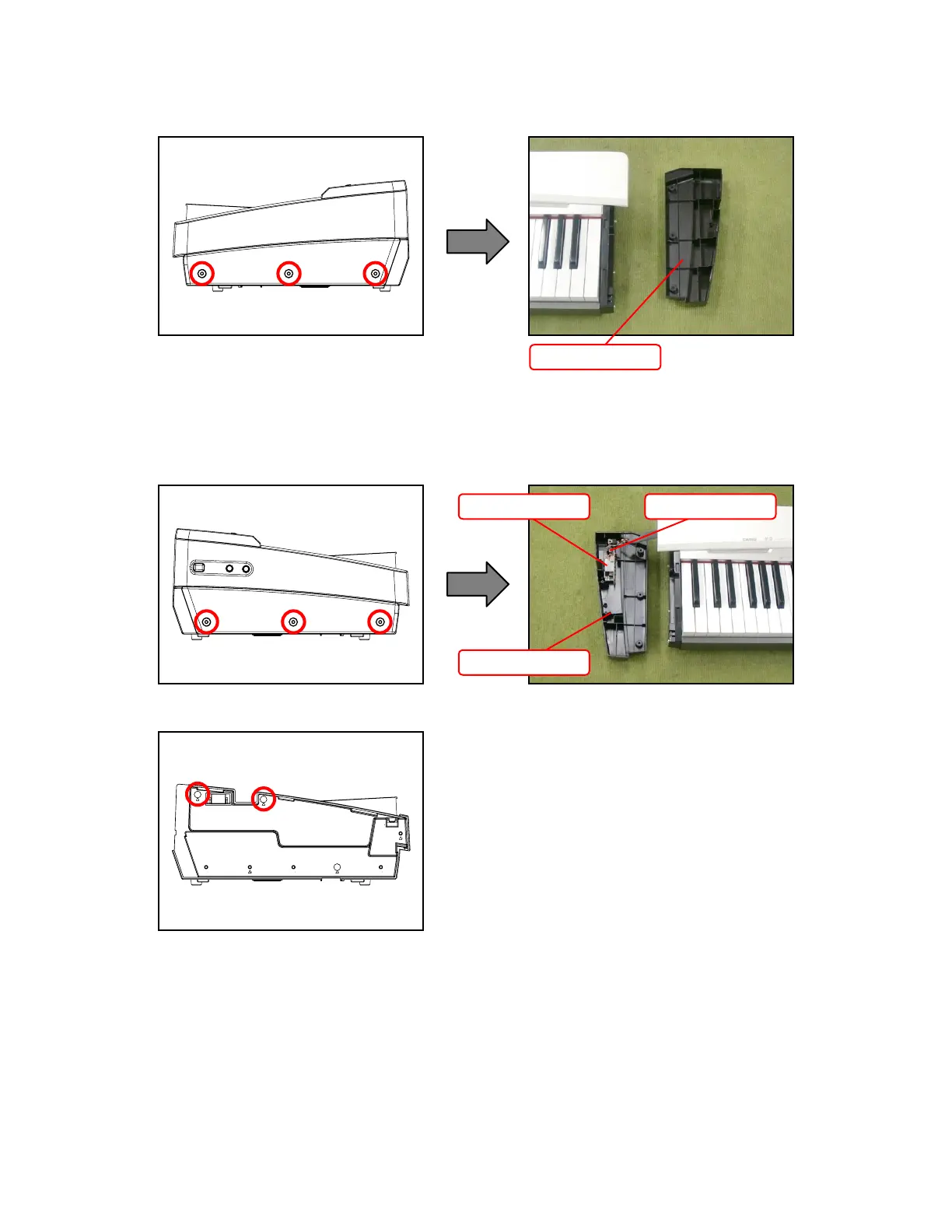Place the main unit with the keys facing up. Undo three screws on the right side case.3.