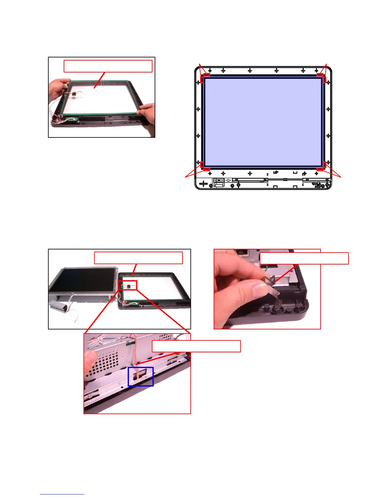 NOTE: Pull out the FPC of the Touch Panel through the opening of the chassis.