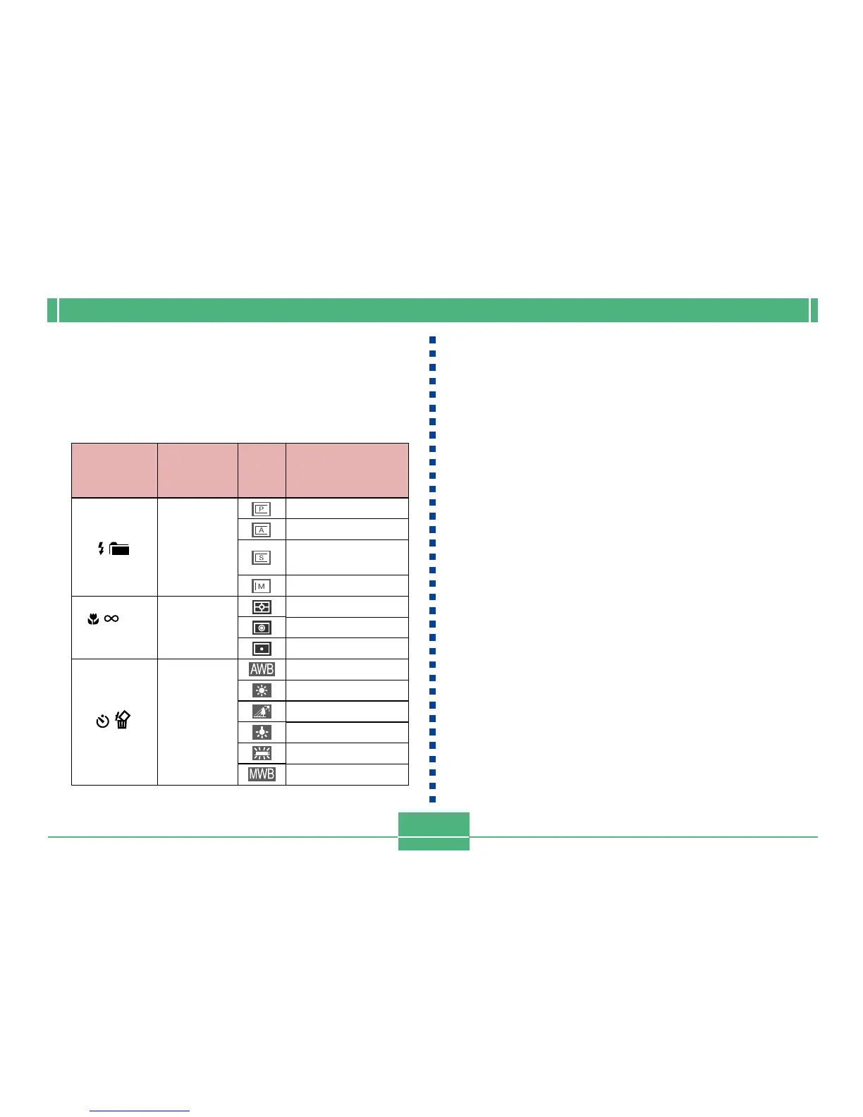 setting of each button is indicated by an icon