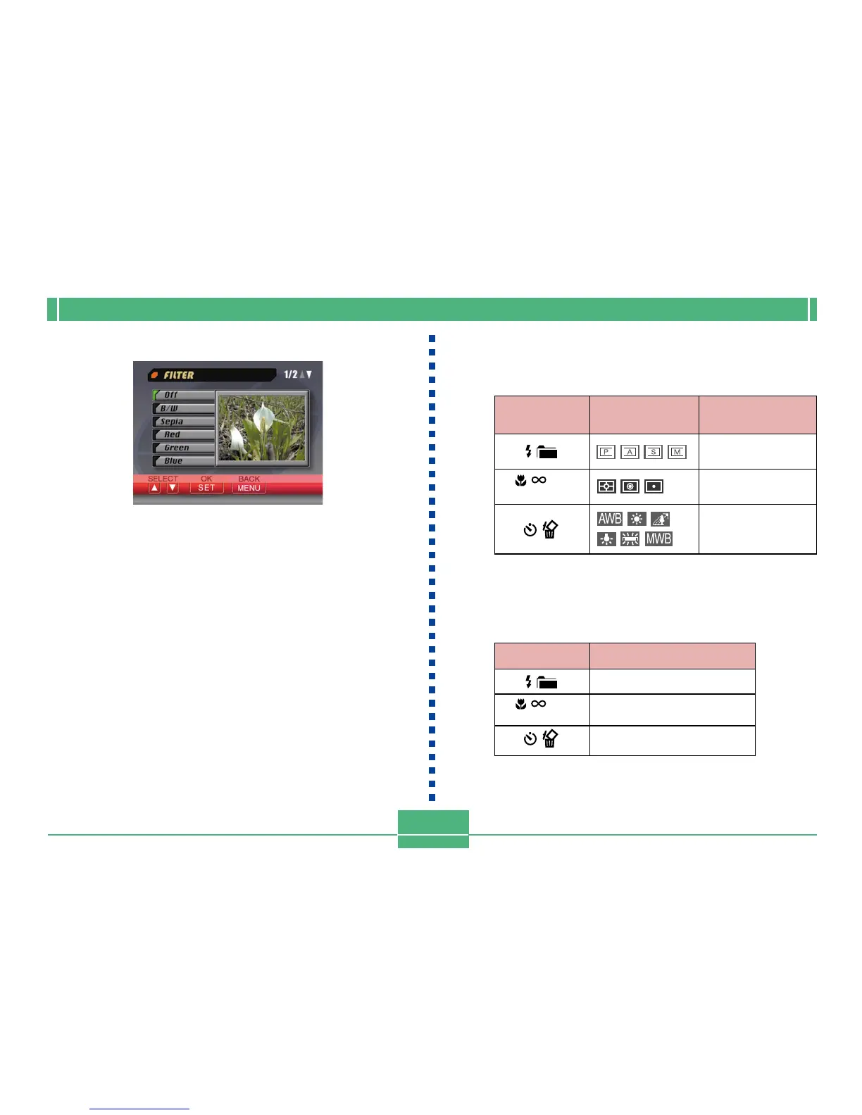 the table under “Camera Menus” on page E-140 to a