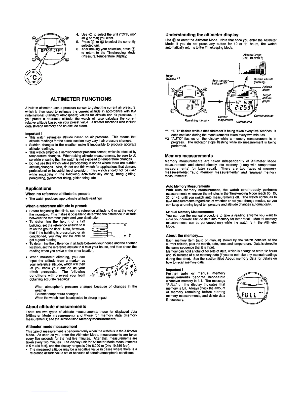 Casio QW-950-98 - Altimeter Functions; Applications; About Altitude Measurements; Understanding the Altimeter Display