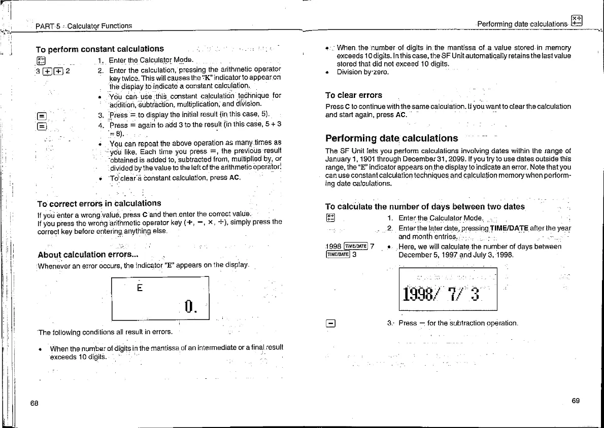 Casio SF-4700C - To perform constant calculations; Performing date calculations