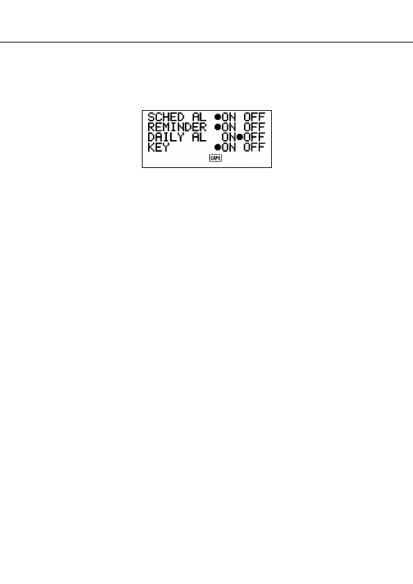 4. Use H and J to switch the key input tone or an alarm tone on and off.