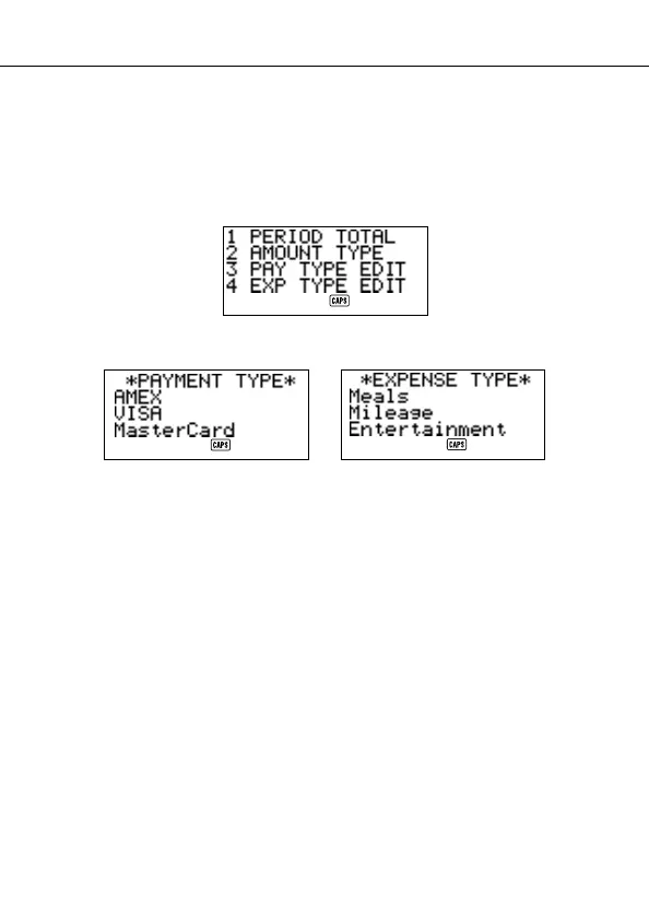 3. Press 3 if you want to edit payment type labels or 4 to edit expense type labels.