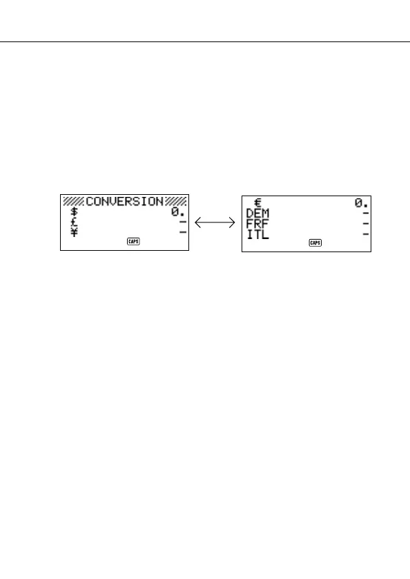 • Initially this mode is set up to convert between dollars ($), pounds (£), and yen