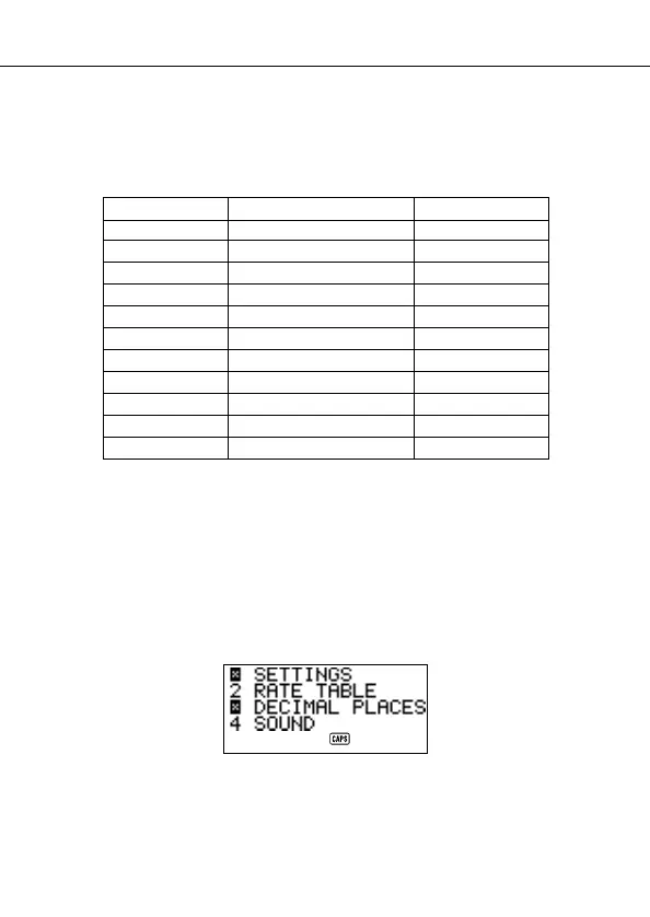 • The Decimal Places column of the above table shows the default setting for
