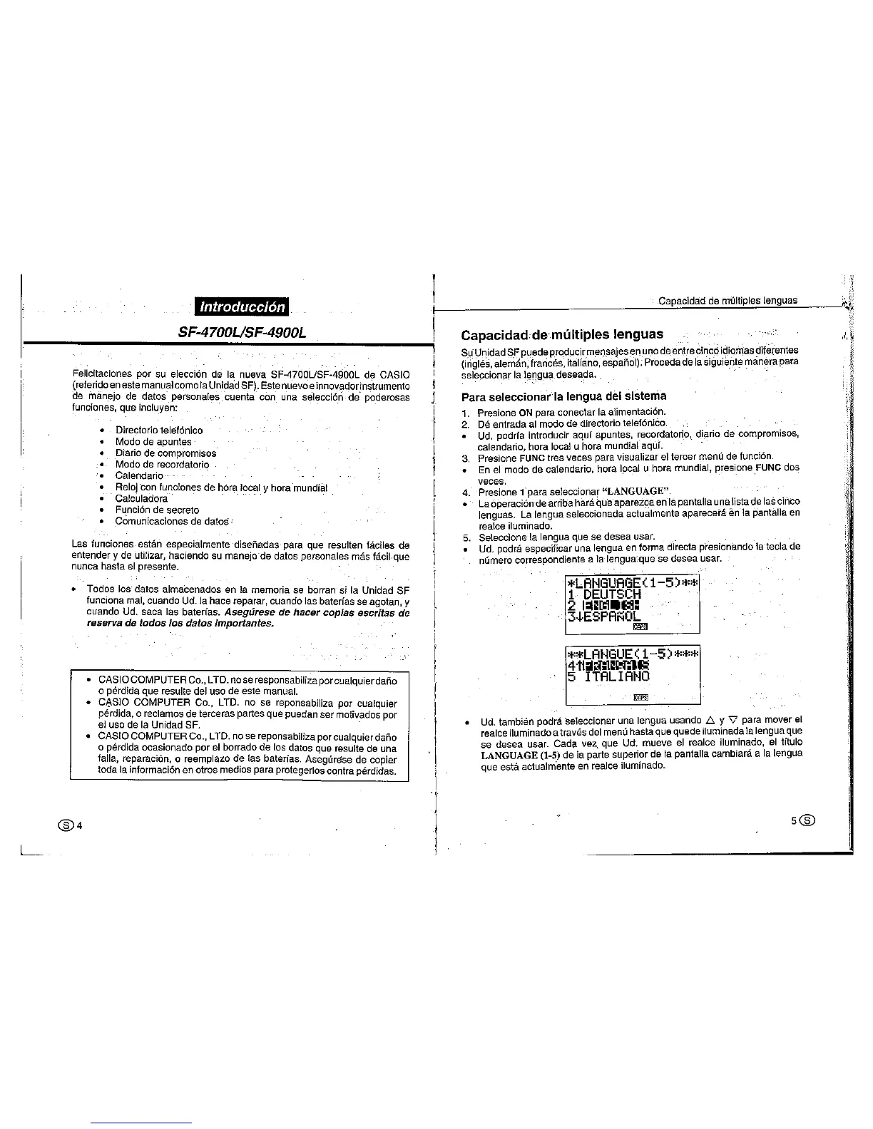 Other manuals for Casio SF-4900L