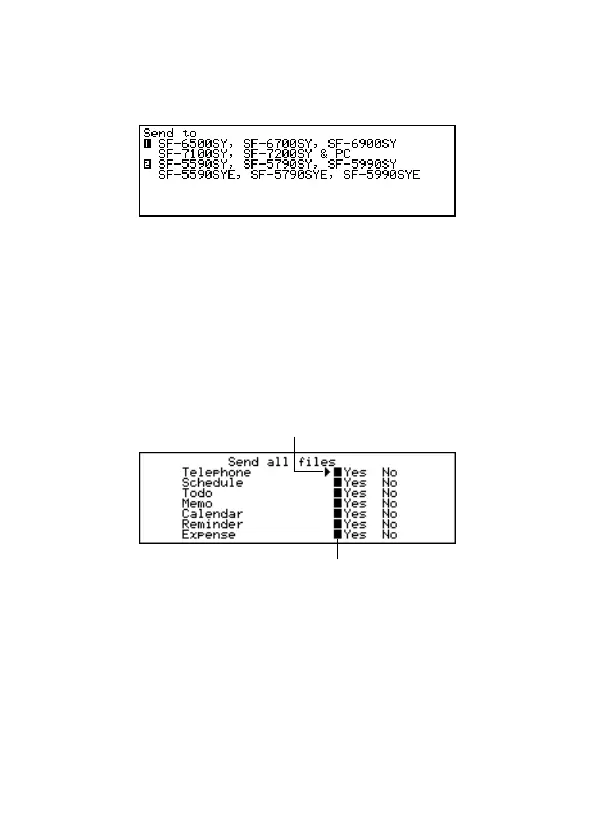 • Data in modes set to “Yes” will be sent, while data in modes set to “No” will not.