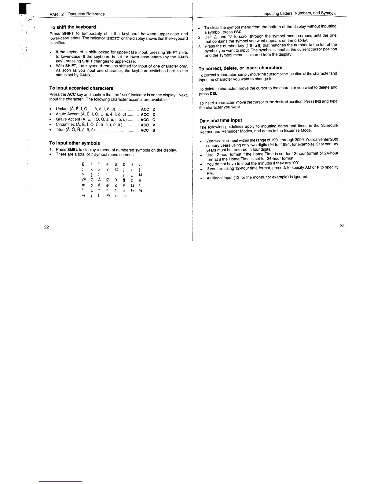 Casio SF-7900 - To Shift the Keyboard; To Input Accented Characters; To Input Other Symbols; Date and Time Input