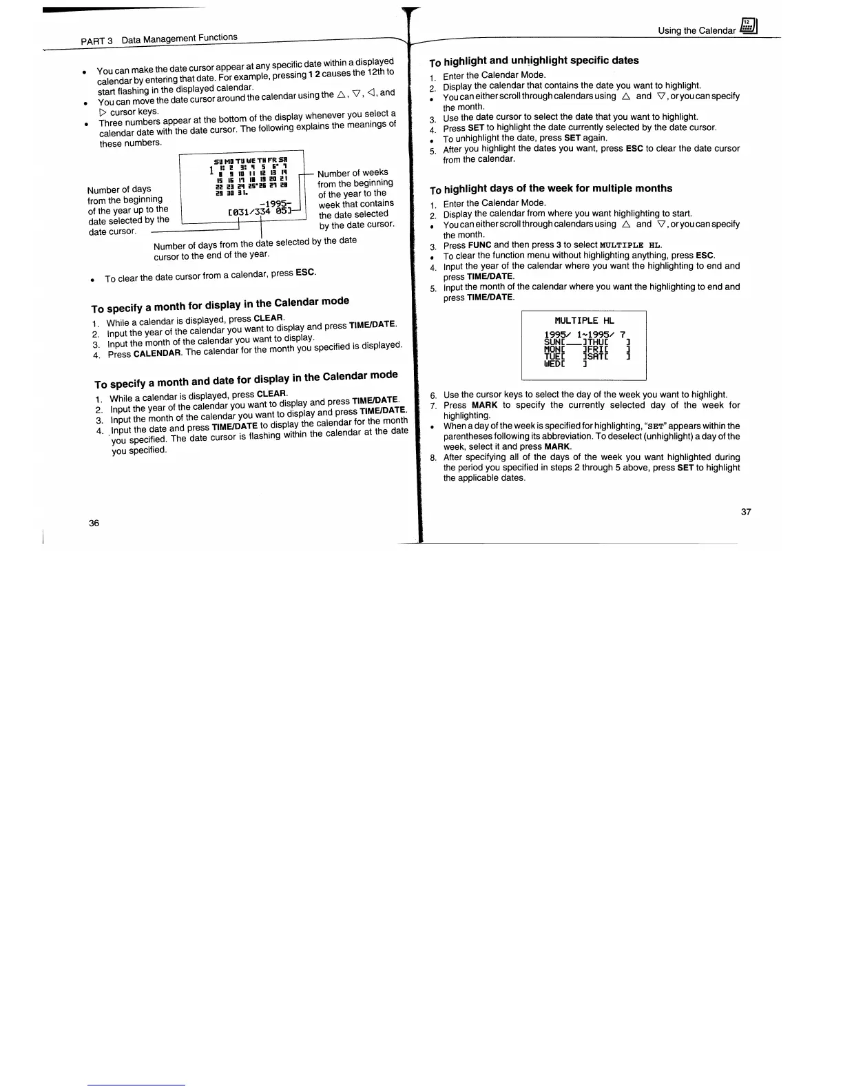 Casio SF-7900 - To Highlight and Unhighlight Specific Dates