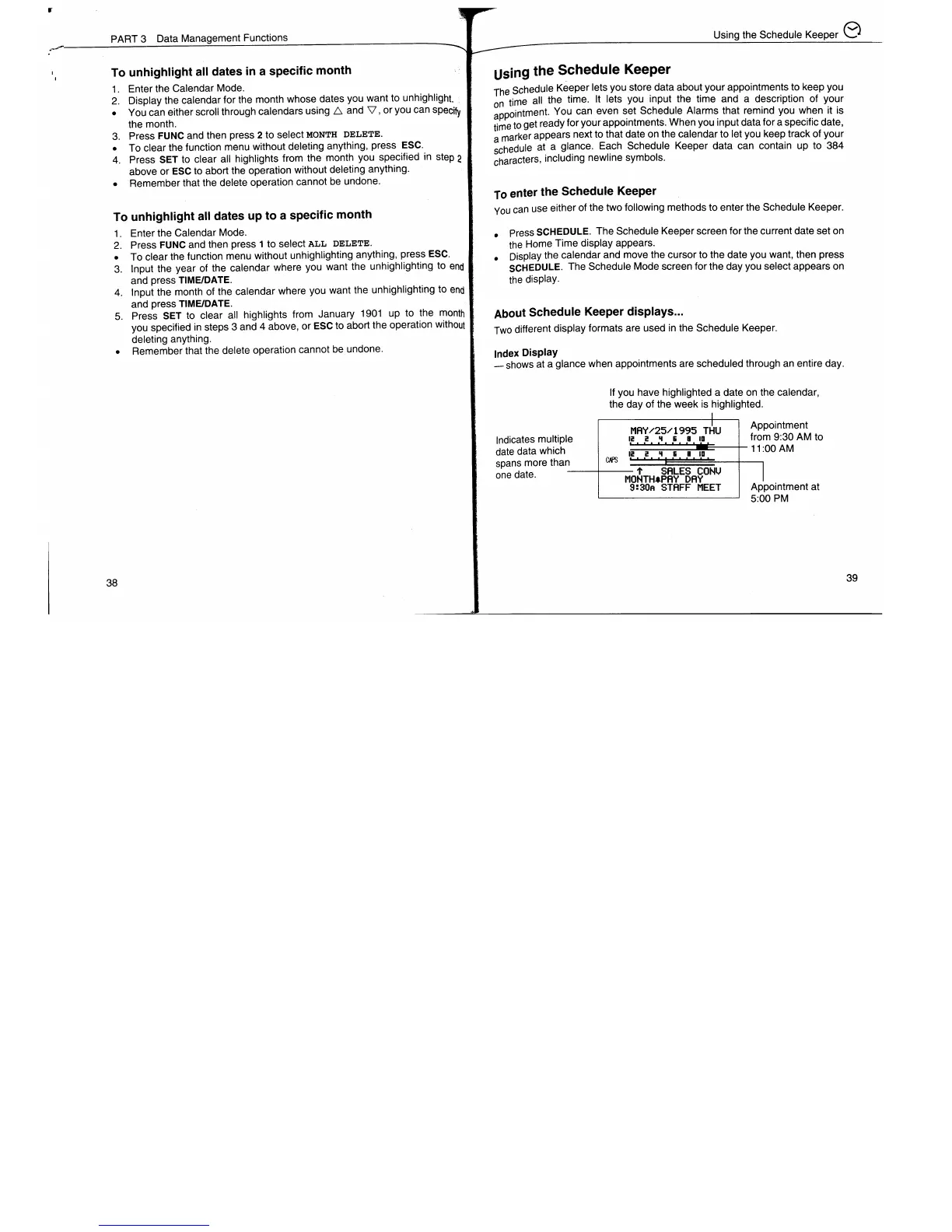Casio SF-7900 - Using the Schedule Keeper; To Enter the Schedule Keeper; About Schedule Keeper Displays; Index Display