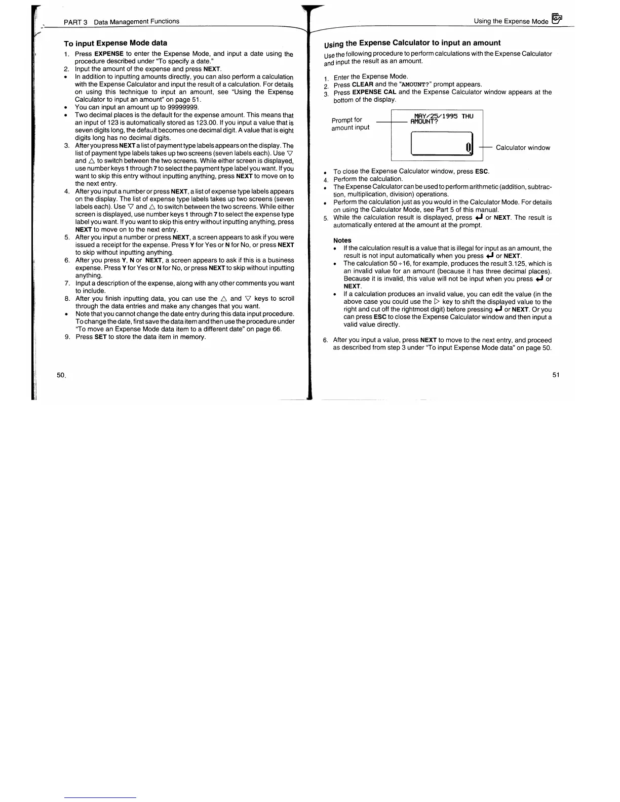 Casio SF-7900 - To Input Expense Mode Data; Using the Expense Calculator to Input an Amount