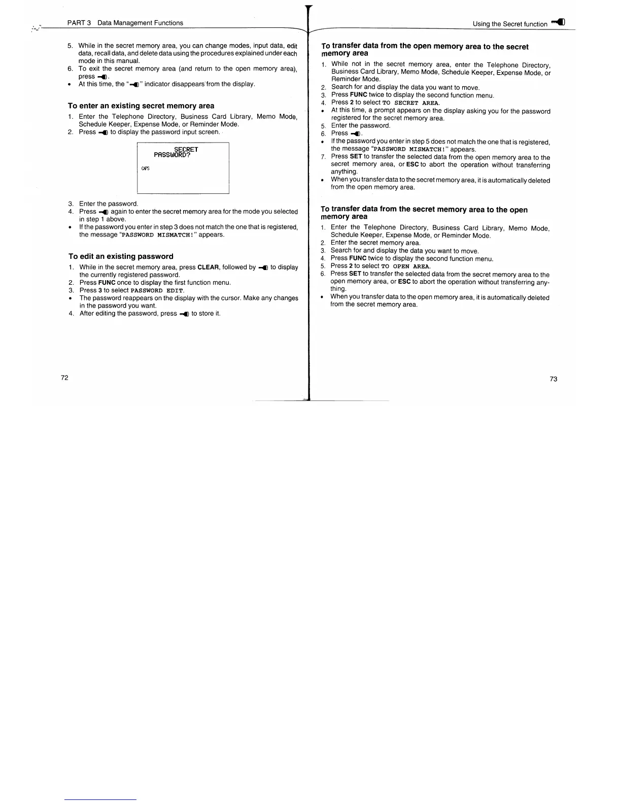 Casio SF-7900 - To Enter an Existing Secret Memory Area; To Edit an Existing Password