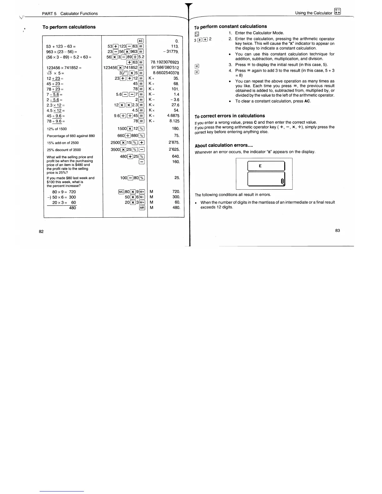 Casio SF-7900 - To Perform Calculations; To Perform Constant Calculations; To Correct Errors in Calculations; About Calculation Errors
