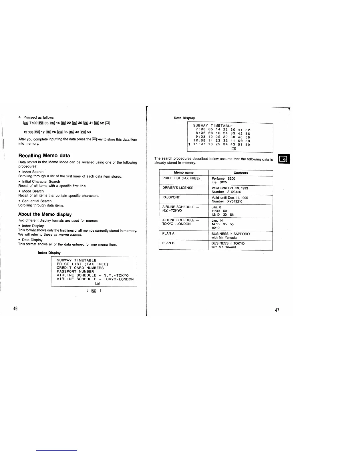 Casio SF-9350 - Recalling Memo Data; About the Memo Display