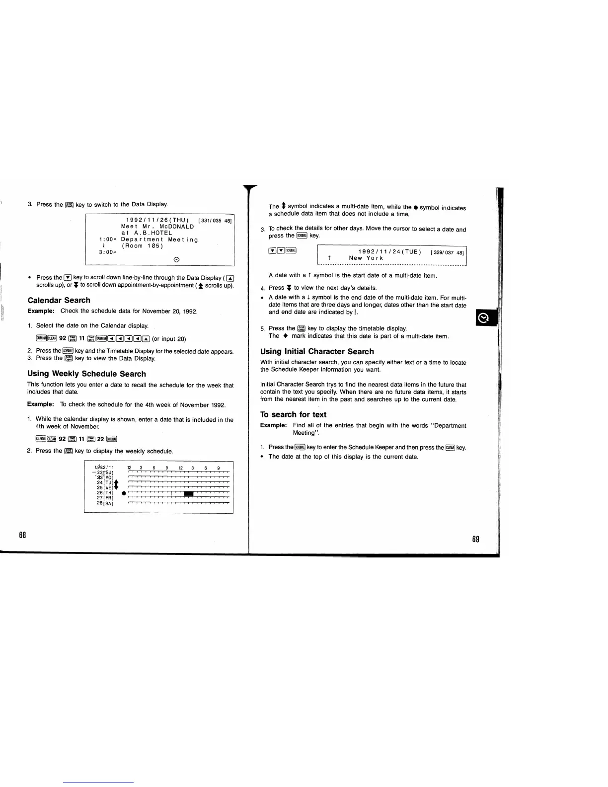 Casio SF-9350 - Calendar Search; Using Weekly Schedule Search; Using Initial Character Search; To Search for Text