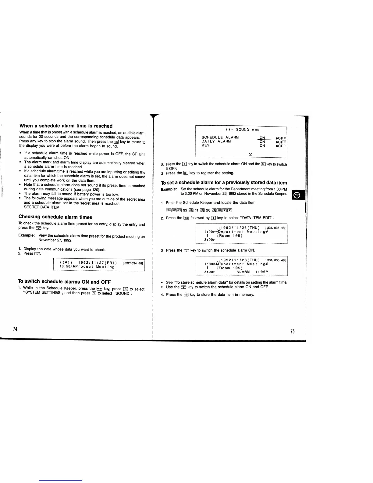 Casio SF-9350 - When a Schedule Alarm Time Is Reached; Checking Schedule Alarm Times; To Switch Schedule Alarms on and off