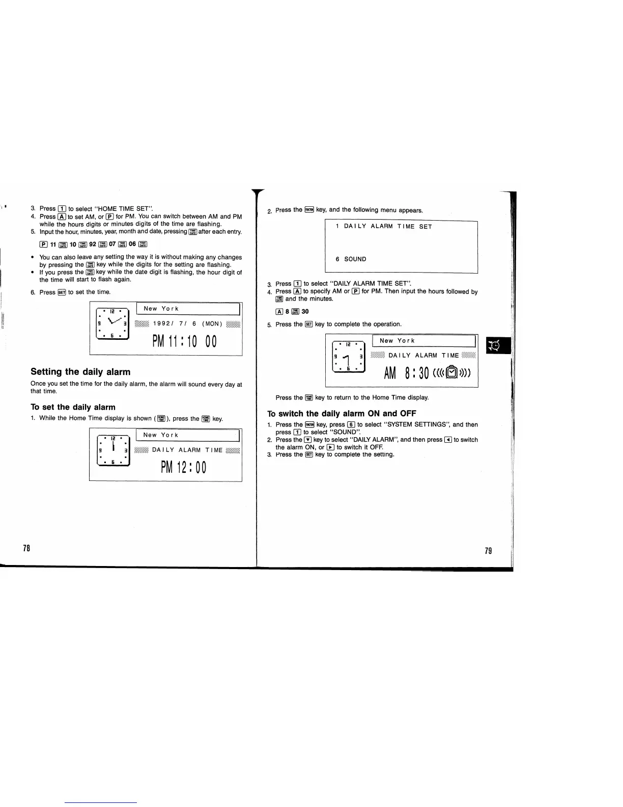 Casio SF-9350 - Setting the Daily Alarm; To Set the Daily Alarm; To Switch the Daily Alarm on and off