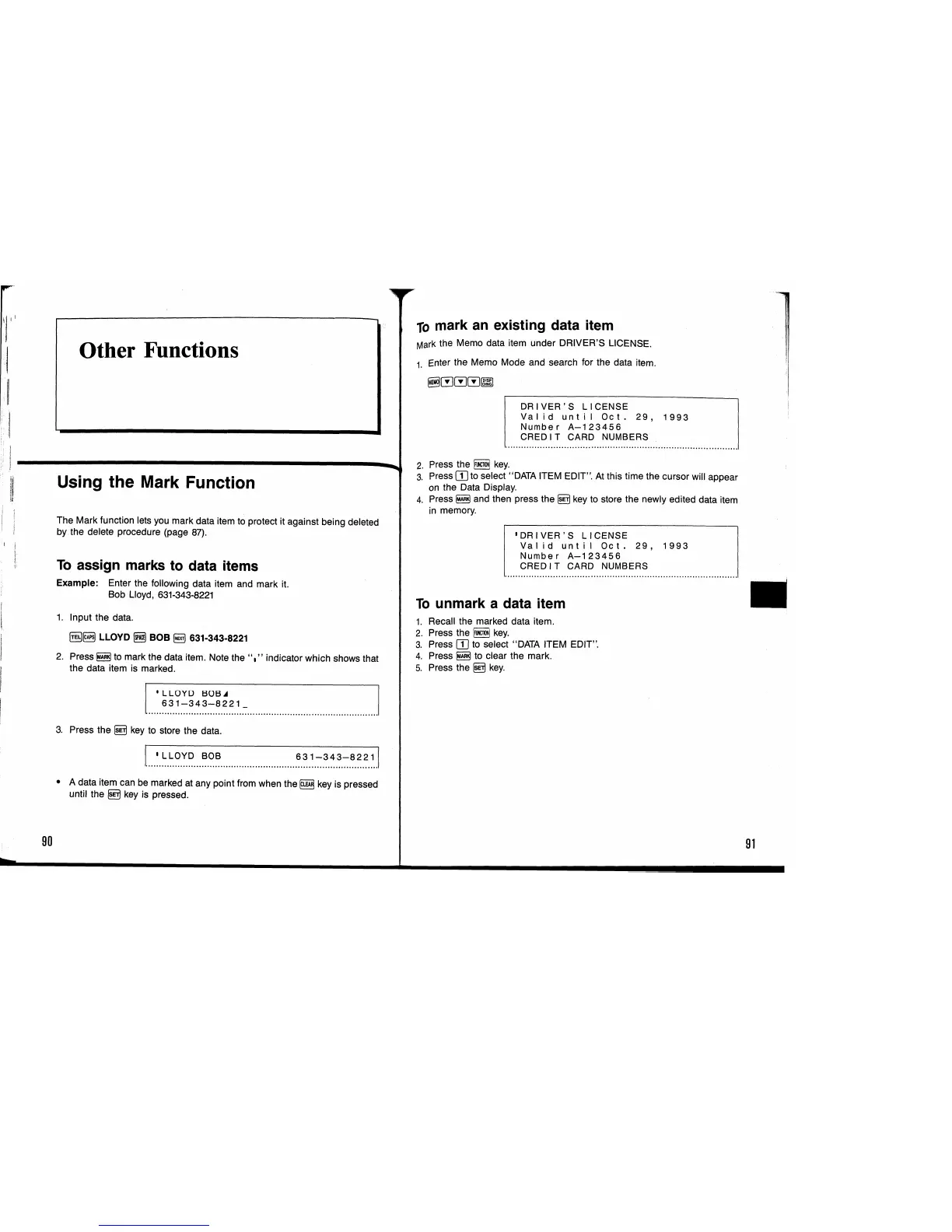Casio SF-9350 - Other Functions; Using the Mark Function; To Assign Marks to Data Items; To Mark an Existing Data Item