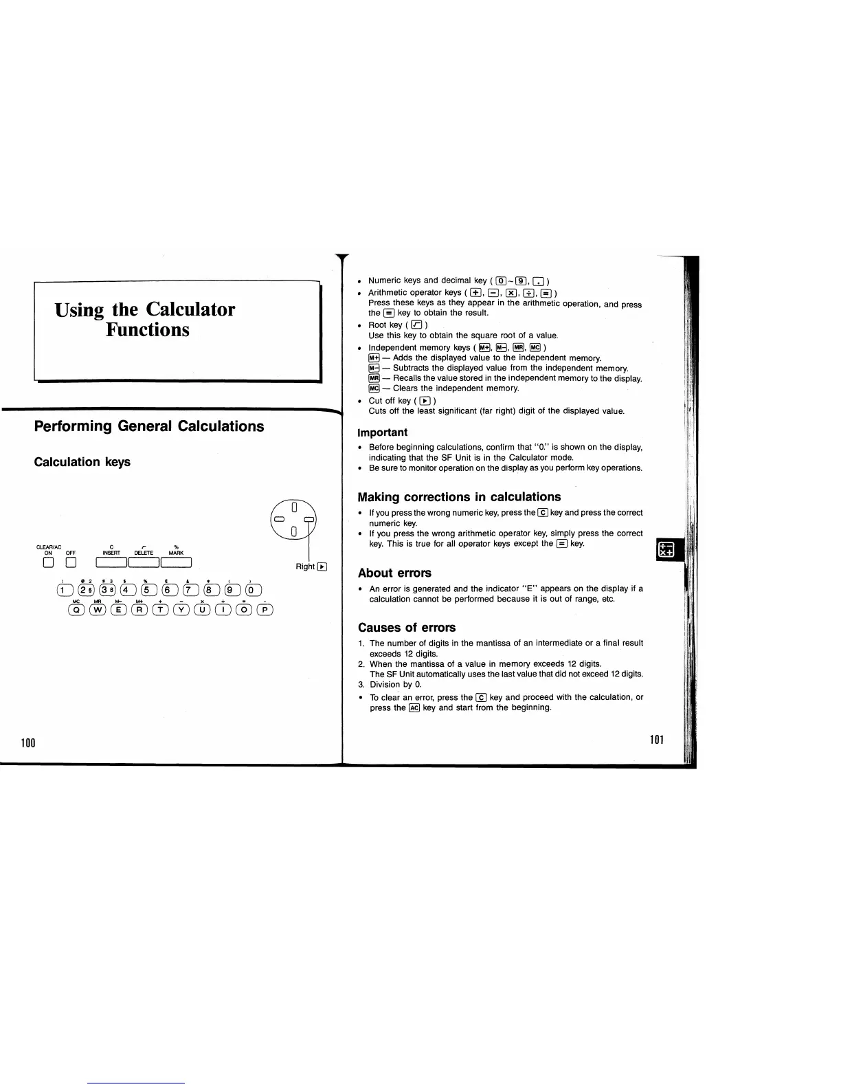 Casio SF-9350 - Using the Calculator Functions; Performing General Calculations; Calculation Keys; About Errors