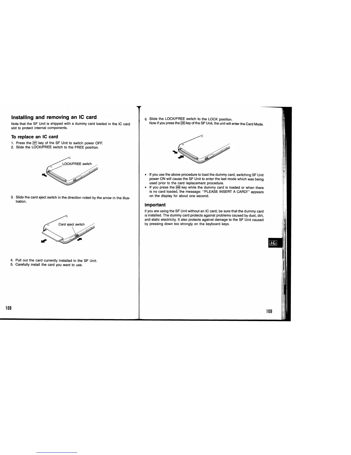 Casio SF-9350 - Installing and Removing an IC Card; To Replace an IC Card