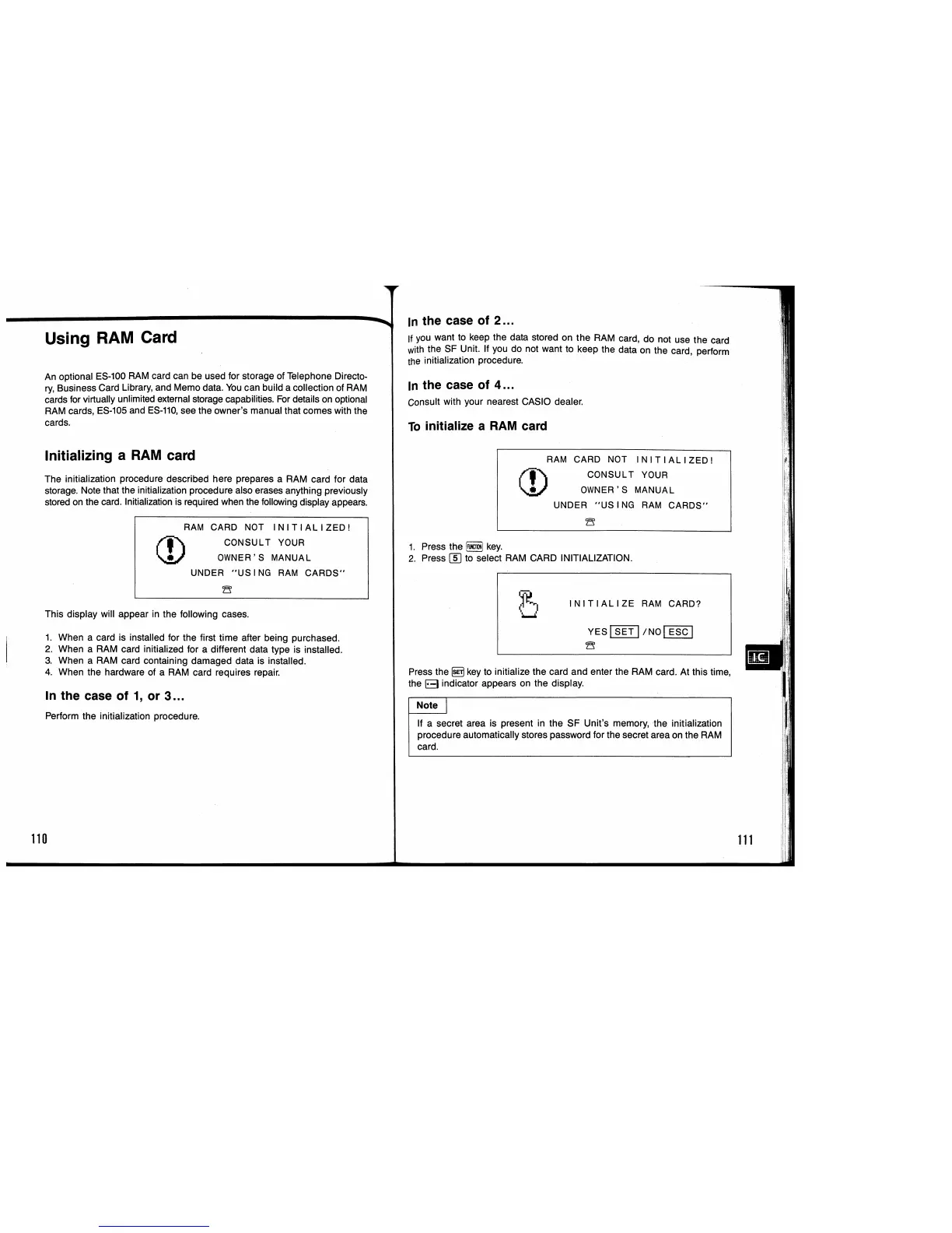 Casio SF-9350 - Using RAM Card; Initializing a RAM Card