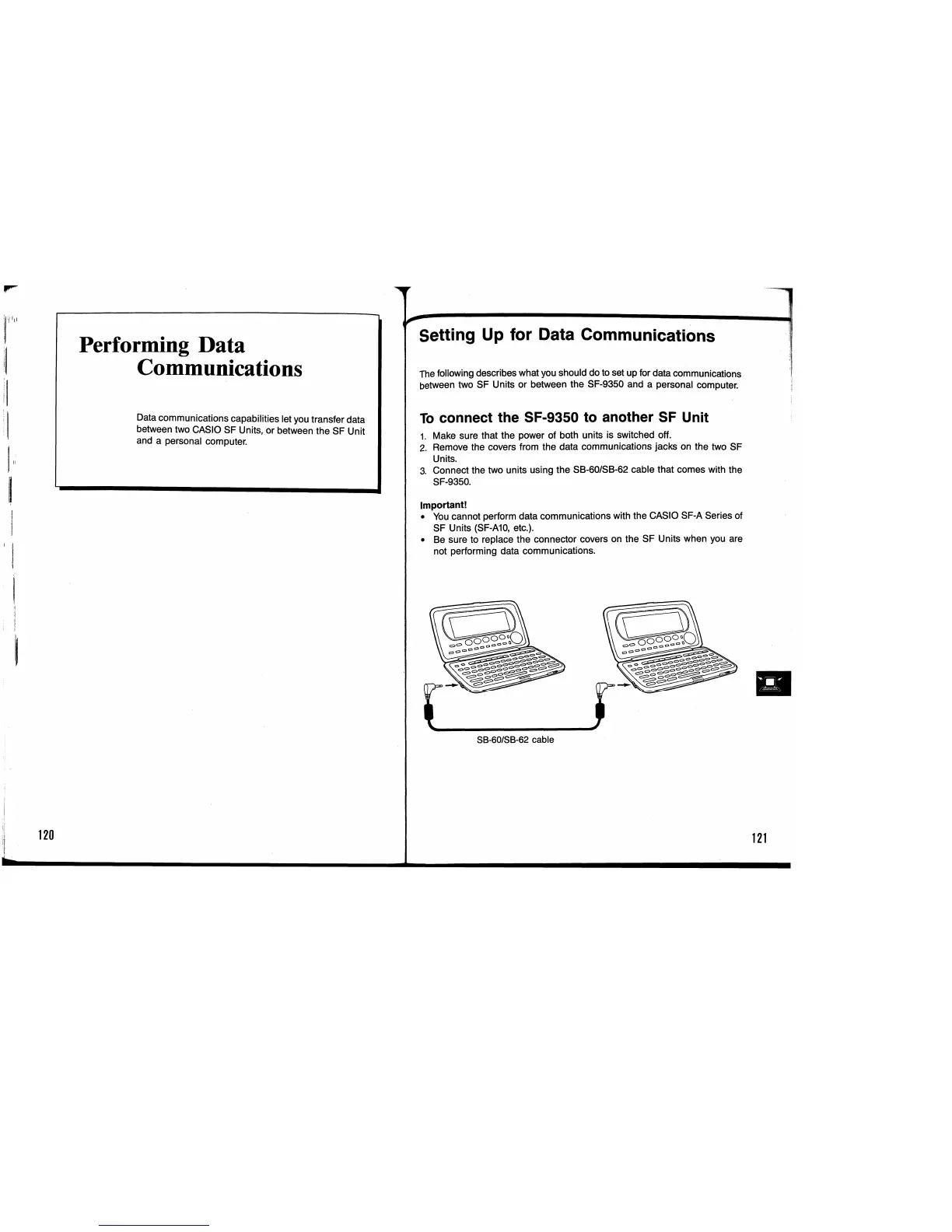 Casio SF-9350 - Performing Data Communications; Setting up for Data Communications; To Connect the SF-9350 to Another SF Unit
