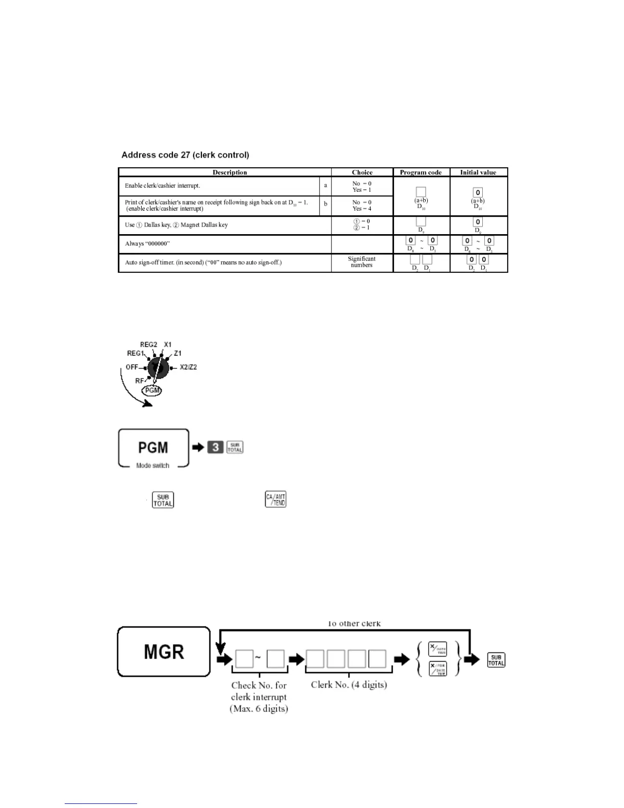 Note: MGR Mode is X position