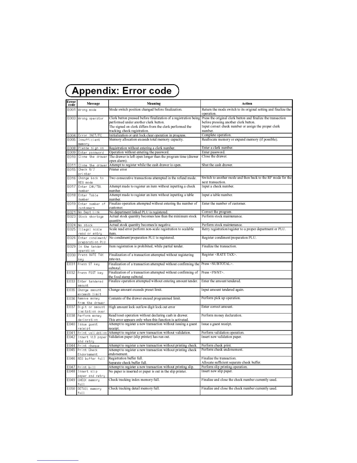 Casio TE-4000 - Error Codes and Troubleshooting; Appendix: Error Code Reference