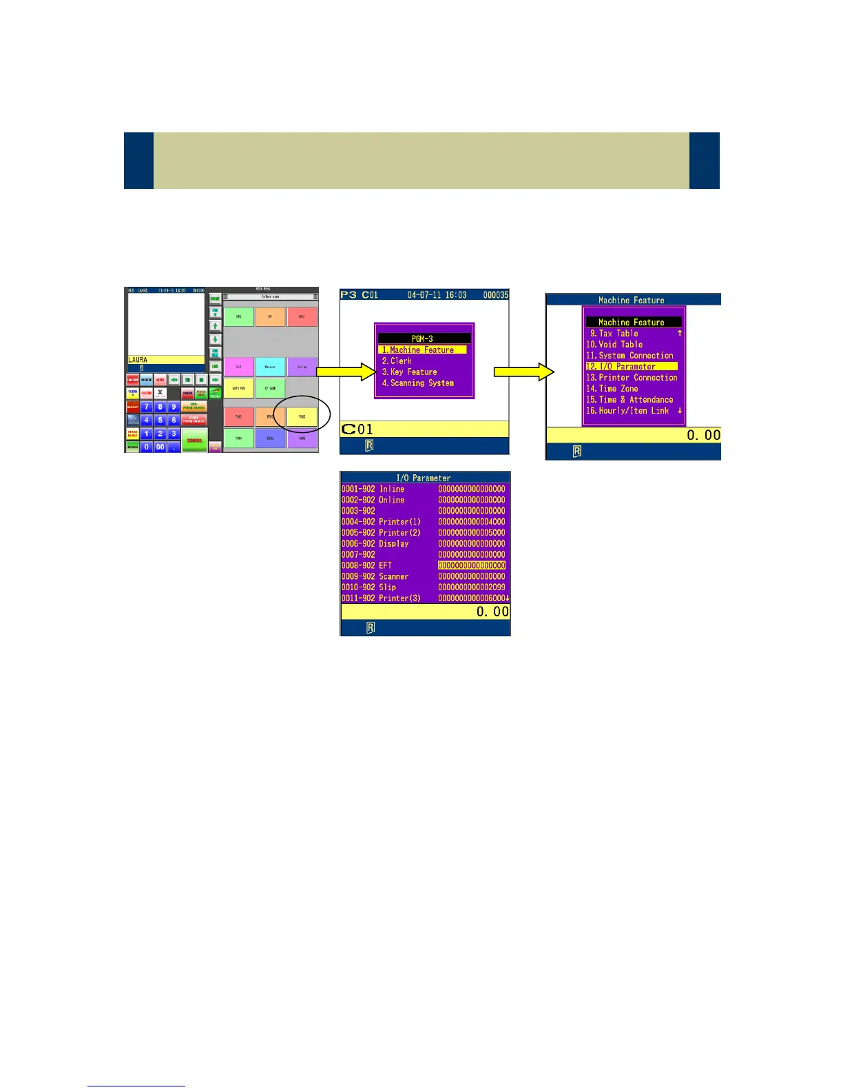 5. Highlight line #8 (EFT) and enter 11000000X1 (X=Com port the PAX is