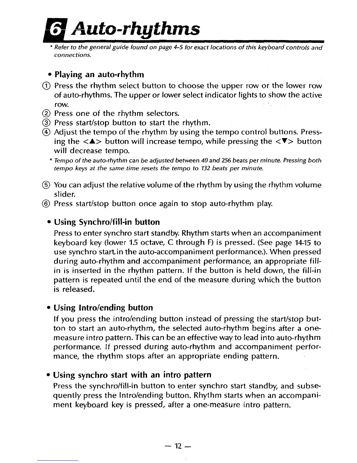 Casio Tone Bank CT-650 - Casio CT-650 Auto-rhythms; Playing and Controlling Auto-Rhythms